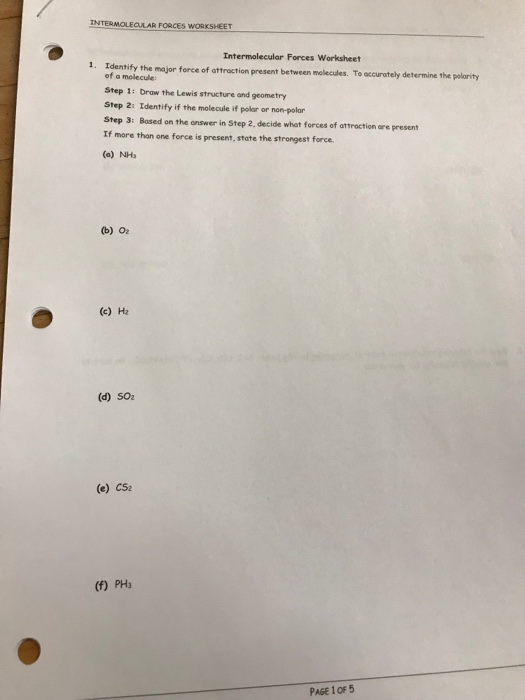 Solved: INTERMOLEQULAR FORCES WORKSHEET Intermolecular For ... from media.cheggcdn.com In this intermolecular forces worksheet, students read about the two types of forces: Intermolecular force worksheet google docs from intermolecular forces worksheet, source:docs.google.com. Identify the strongest intermolecular force operating in the condensed phases of the following substances. List all types of imfs that would occur in each of the following a. What is the strongest intermolecular force present for each of the following molecules? Rank the following from weakest intermolecular forces to strongest. Rank the following compounds from weakest intermolecular forces to strongest. Some of the worksheets displayed are intermolecular forces work, intermolecular force work key, work 15, chemistry 20 intermolecular forces work, intermolecular forces work.